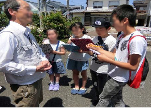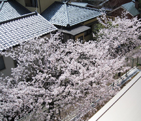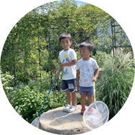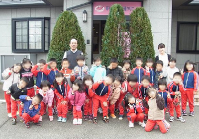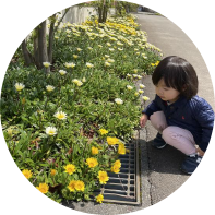 北東の第①、中央の第②、西側の第③ 、運動場との境界のフェンスを利用した第④の花壇から成り立つ。敷地東西の扇形の庭に樅の木。中央用水に沿った庭の両側にコニファー。