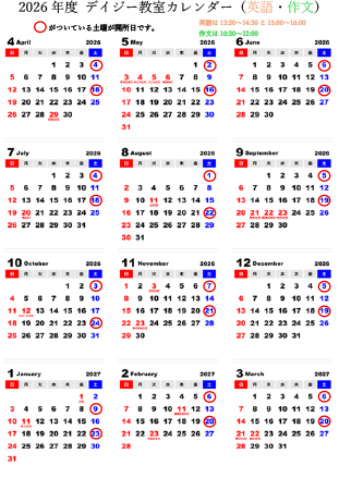 月2回 土曜日 ※英語教室開催日に実施(詳細はカレンダーをご確認ください) |