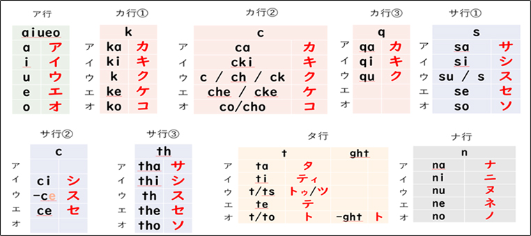 ローマ字知識やカタカナ表記をてこに音・綴りの対応を整理して与える。